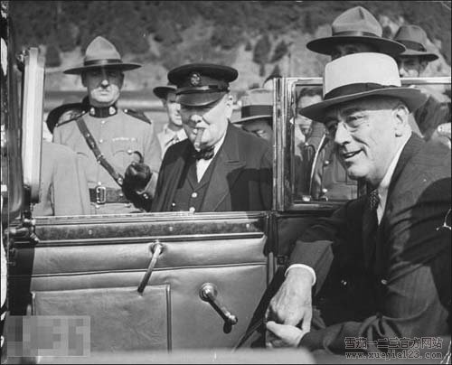 两位出名烟民。温斯顿·丘吉尔和富兰克林·罗斯福在魁北克评论战事。摄于1943年。罗斯福因他的小烟斗出名的程度彻底不亚于丘吉尔因雪茄出名的程度。这个满脸喜形于色的罗斯福形象成为了19世纪三四十年代最众所周知的形象。
