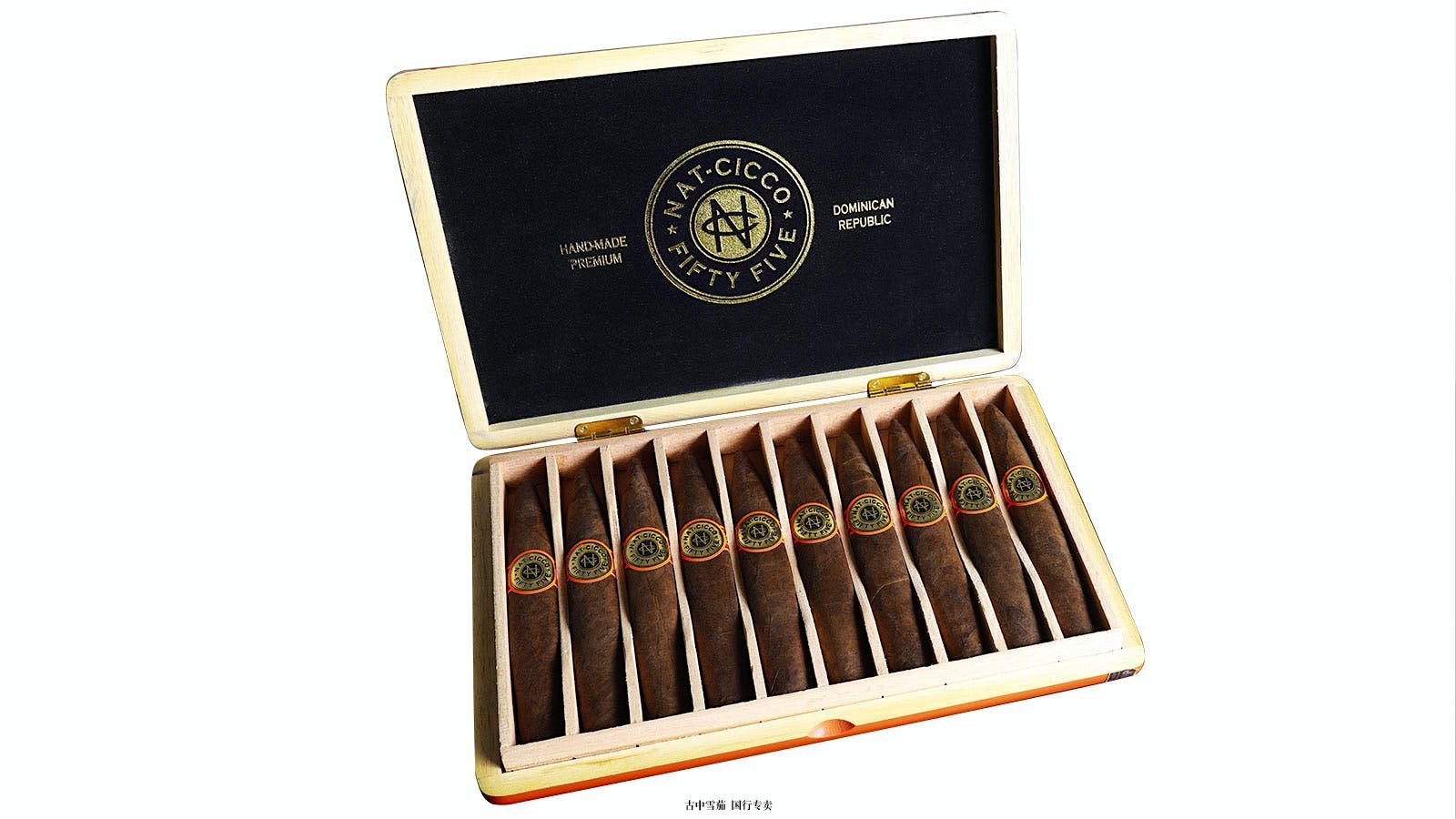 这款浓烟的尺寸为 6 1/4 英寸,环规为 60,采用康涅狄格州阔叶茄衣、来自爪哇岛的印度尼西亚茄套以及来自尼加拉瓜和多米尼加共和国的茄芯叶制成。Nat Cicco 55 采用橙色盒装,每盒 10 支,零售价每支 16 美。