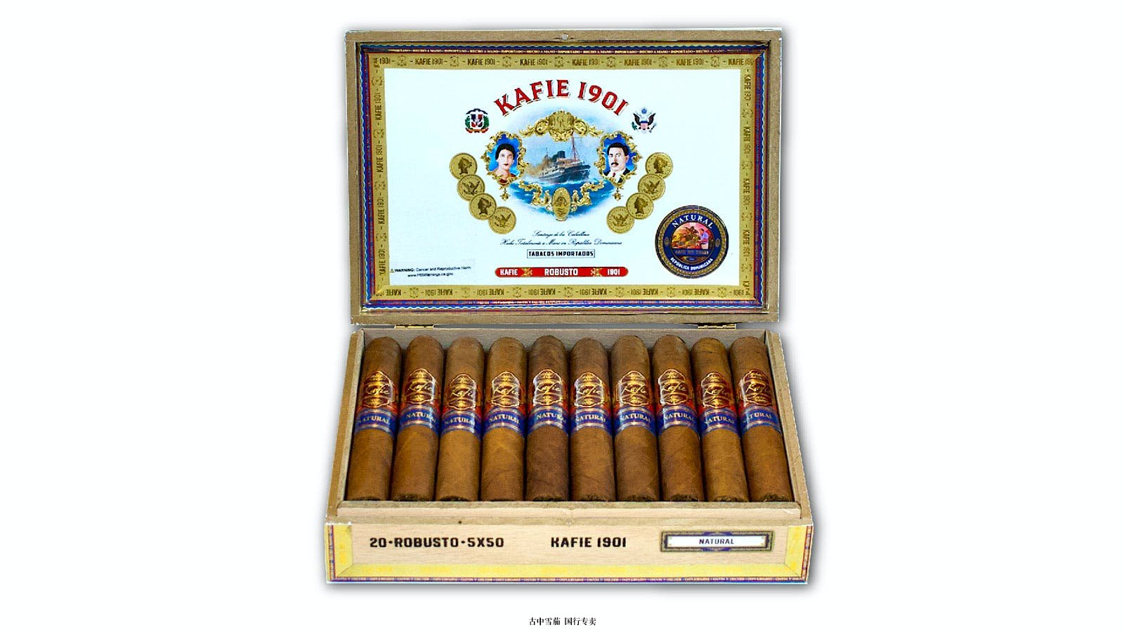 Kafie 1901 Serie L Natural 的全多米尼加混合酒是 Kafie 和 La Aurora 的调酒大师 Manuel Inoa 之间的合作。据报道,Corojo 茄衣已经陈化了五年,茄衣和茄芯烟草均在 Cibao Valley 种植。据卡菲介绍,这些是中度至浓郁的雪茄。这些叶子都是在 La Aurora 拥有的农场种植的。