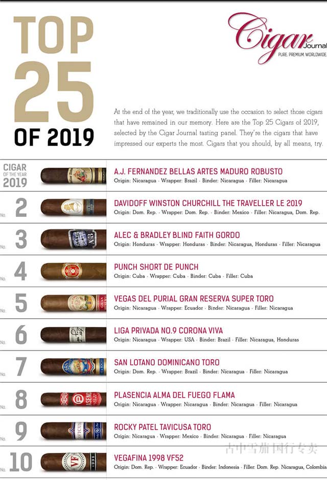 《Cigar Jorunal雪茄杂志》2019雪茄排名TOP25完整列表