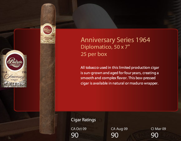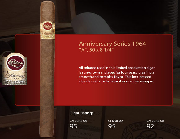 帕德龙1964系列产品于1994年推出,旨在纪念帕德龙公司成立30周年。这个系列有10种不同规格的包装,使用四年熟成的烟草,拥有平滑醇厚口感味道,松木味道明显。 1964年也是帕德龙公司创建的元年,为了有效防止我们的客户购入假货,1964系列已采取防伪与具有独立编号的特制防伪标签。帕德龙1964系列一直被认为是业内此方面的专家之一。