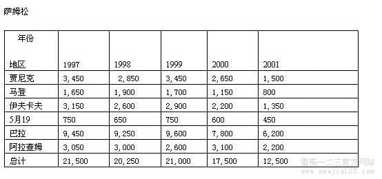 黑海-萨姆松萨姆松的出口等级是六个区域混合在一起的。以下表格显现不一样区域曩昔的出产数字(以吨为单位):