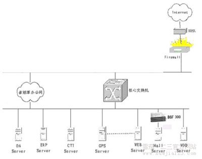 因为川渝中烟工业公司80%的邮件都是废物邮件,且90%的病毒通过邮件传播,因此在邮件入口处就进行邮件的过滤显得特别重要。而博威特网络公司通过其硬件废物邮件防火墙300类型提供了废物邮件防护的处理方案,设计了如下的防废物邮件方案,即在Internet衔接邮件服务器之前装置设备。
